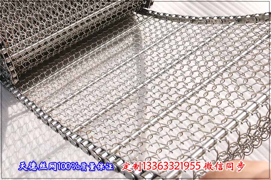鏈桿輸送網鏈的具體規格如下: 1.鏈桿輸送網鏈的總寬度為1000毫米,總長度為200米,鏈條節距為25.4毫米,兩節一根穿桿,即50公分左右一根,金屬桿的直徑為8毫米。 2.鏈條不銹鋼網帶的總寬度為1000毫米,總長度為20米,絲徑為2毫米,孔徑為30*30毫米,不銹鋼網帶的鏈條節距為31.75毫米,不銹鋼桿直徑為8毫米,傳桿之間的距離為20公分左右,材質選用不銹鋼201材質。