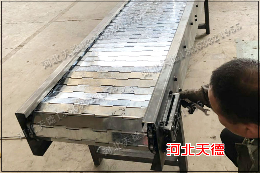 今天早上北京的客戶來電咨詢鏈板輸送機的規(guī)格,客戶知道自己使用鏈板輸送機比較合適,但是不知道如何與廠家溝通詳細(xì)的規(guī)格,也不清楚如何設(shè)計自己使用的鏈板輸送機的規(guī)格。我們經(jīng)過溝通以后,我們天德公司為北京這位客戶定制了以下規(guī)格的鏈板輸送機。